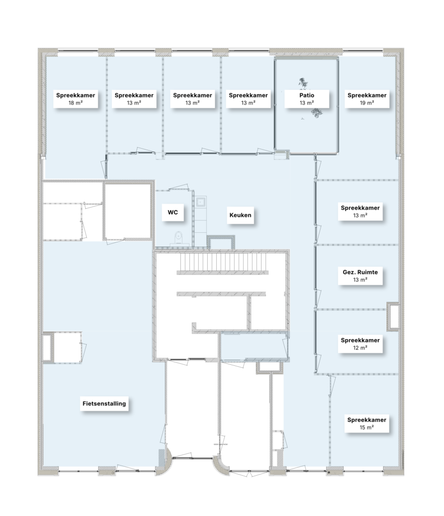 Door de hoge ramen is er in alle ruimtes veel natuurlijk licht aanwezig.